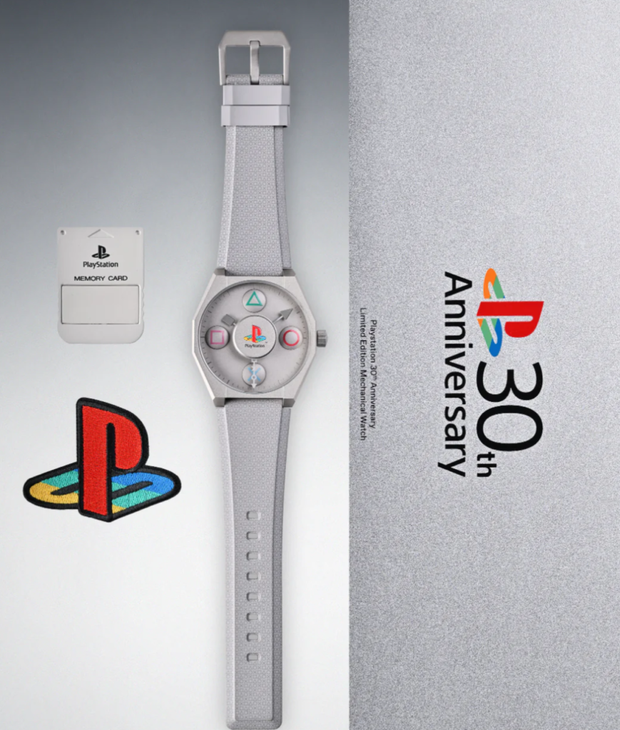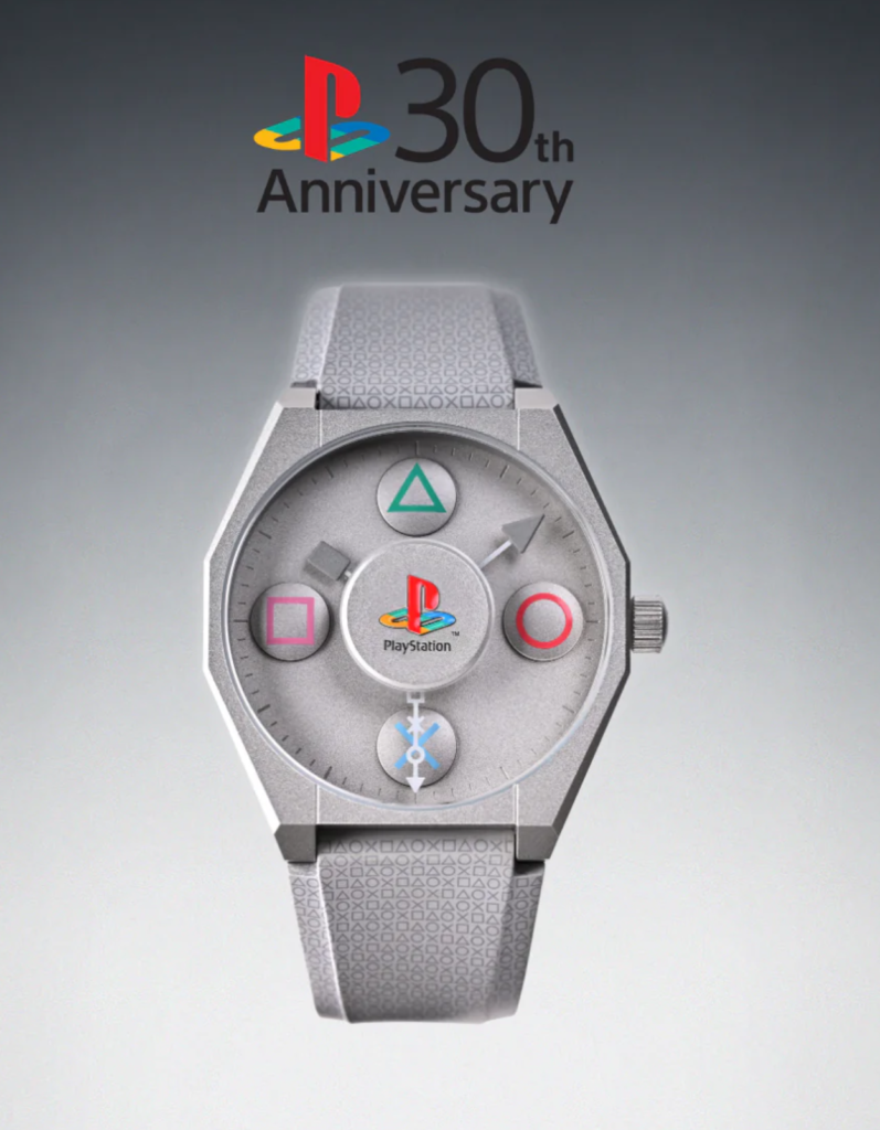 “A tribute to the original PlayStation™ that revolutionized the gaming industry in 1994. This anniversary timepiece encapsulates the essence of gaming nostalgia. The dial and strap are adorned with the four iconic △〇×□, while the hands are decorated with the Start & Select from the PlayStation controller.”